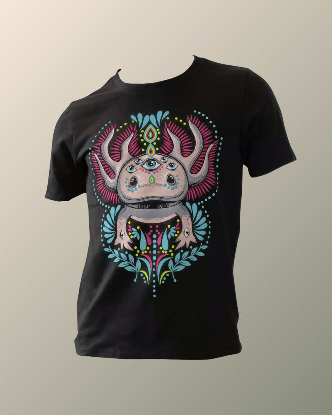 Psychedelic Alebrije Axolotl Inspired T-shirt | UV Reactive Screen print | Rave Festival Wear