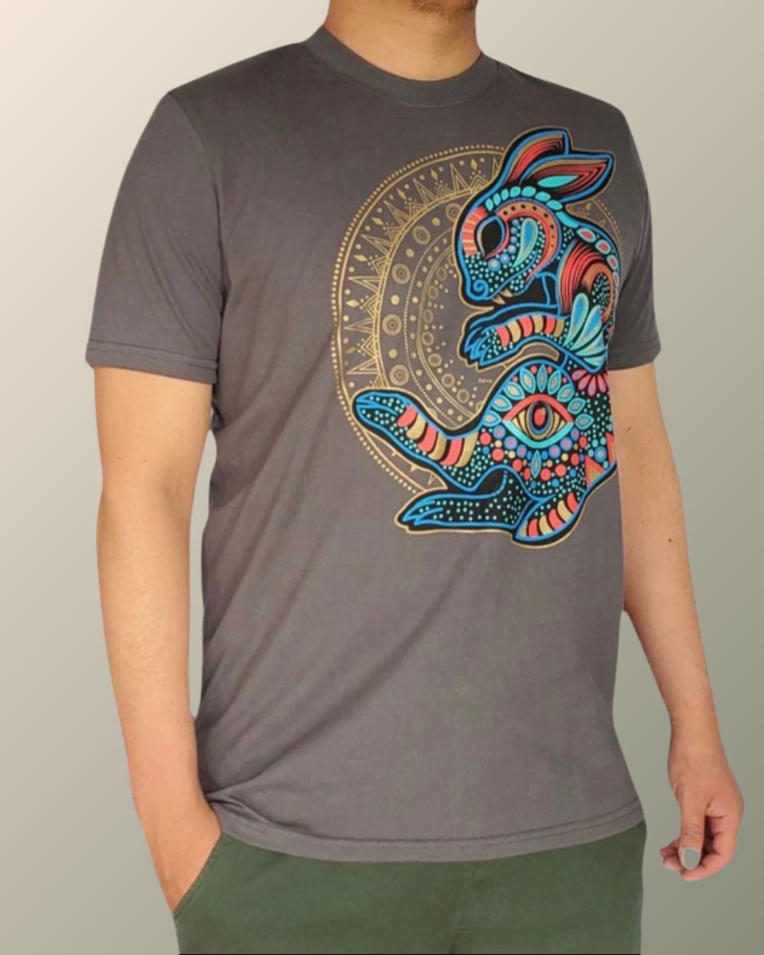 Psychedelic Metzli Rabbit in the Moon Inspired T-shirt | UV Reactive Screen print | Rave Festival Wear