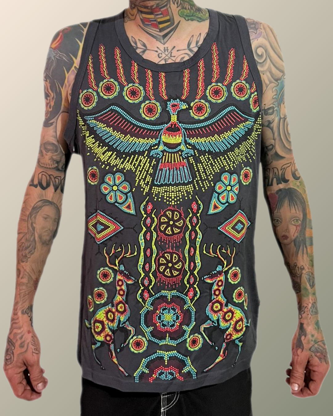Psychedelic Huichol Nierika Eagle Deer Peyote Inspired T-shirt | UV Reactive Screen print | Rave Festival Wear