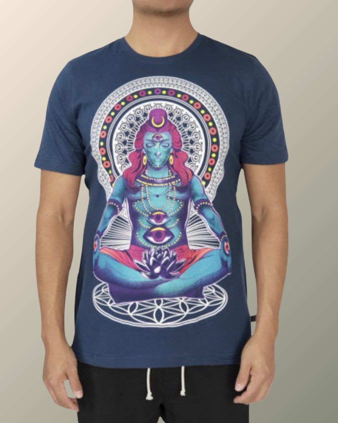 Psychedelic Shiva Mandala Inspired T-shirt | UV Reactive Screen print | Rave Festival Wear